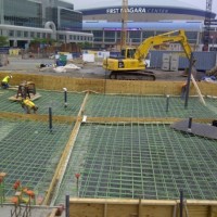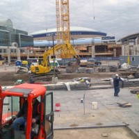 Construction is ongoing on the former Aud Block adjacent to Canalside. The historically aligned Canals, interpret the alignment of the Erie Canal, which once crossed the site, and are designed to evoke the character and vibrancy of the historic Canal District. Ground was broken on this $23 million project earlier this year in May. It is meant to emphasize downtown Buffalo’s connection to the waterfront.